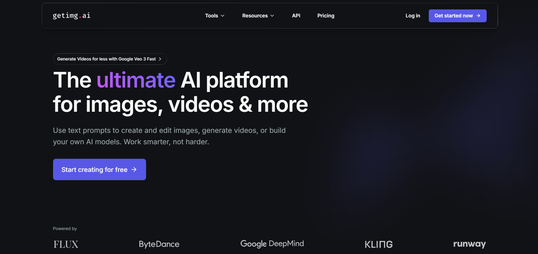 Getimg.ai is based on artificial intelligence, a complete creative toolset that aims to make creating and editing photos easier than ever before. It comes with a variety of AI tools that let users make images from text, make movies, expand photos, and train their own AI models. Getimg.ai is good for both beginners and experts who want to make images quickly and conveniently because it has a simple user interface.